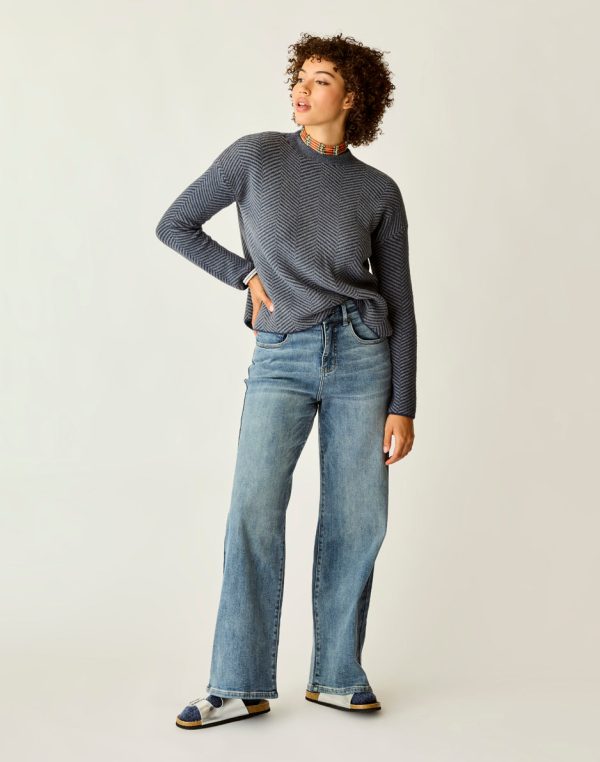 Our signature Victoria Twilight Stretch Denim, zipper fly with button closure and a longer length inseam provide backup to an otherwise showstopper. A high rise that is fitted at the waist and hip and relaxes into a slouchy straight leg. If you like the comfort denim feel of the Carson Jean but want more of a fitted waist and relaxed leg, the Audrey is your jean.