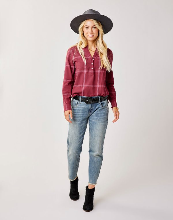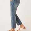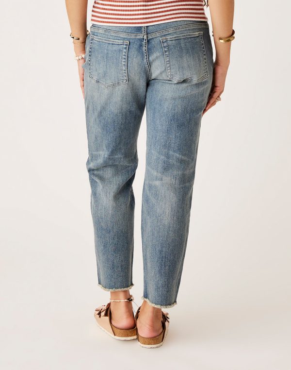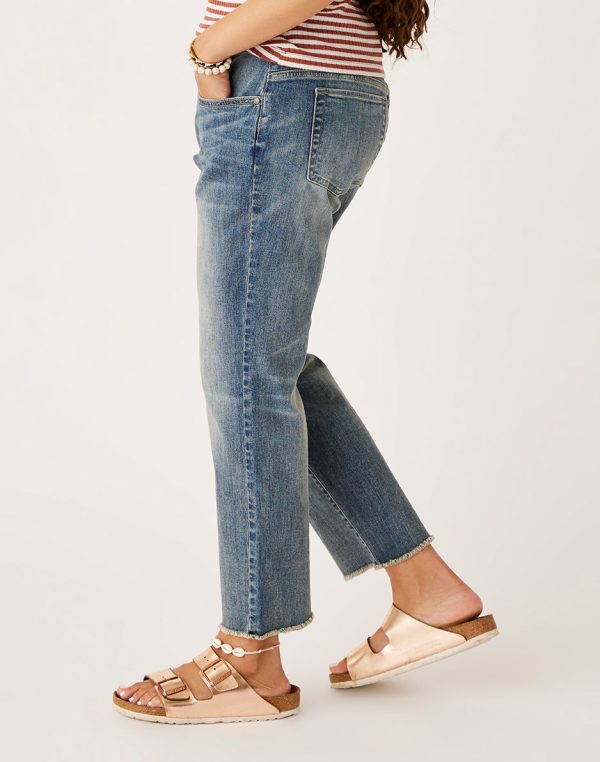 Let your ankles shine with the Austin Crop jean’s flattering symmetrical cut. A looser fit, raw edge step hem and zip fly with button closure beg for crisp fall or early spring walks. The mid rise jean that will become your everyday.